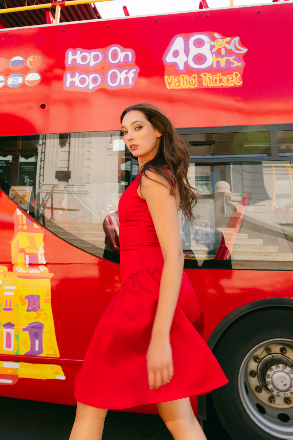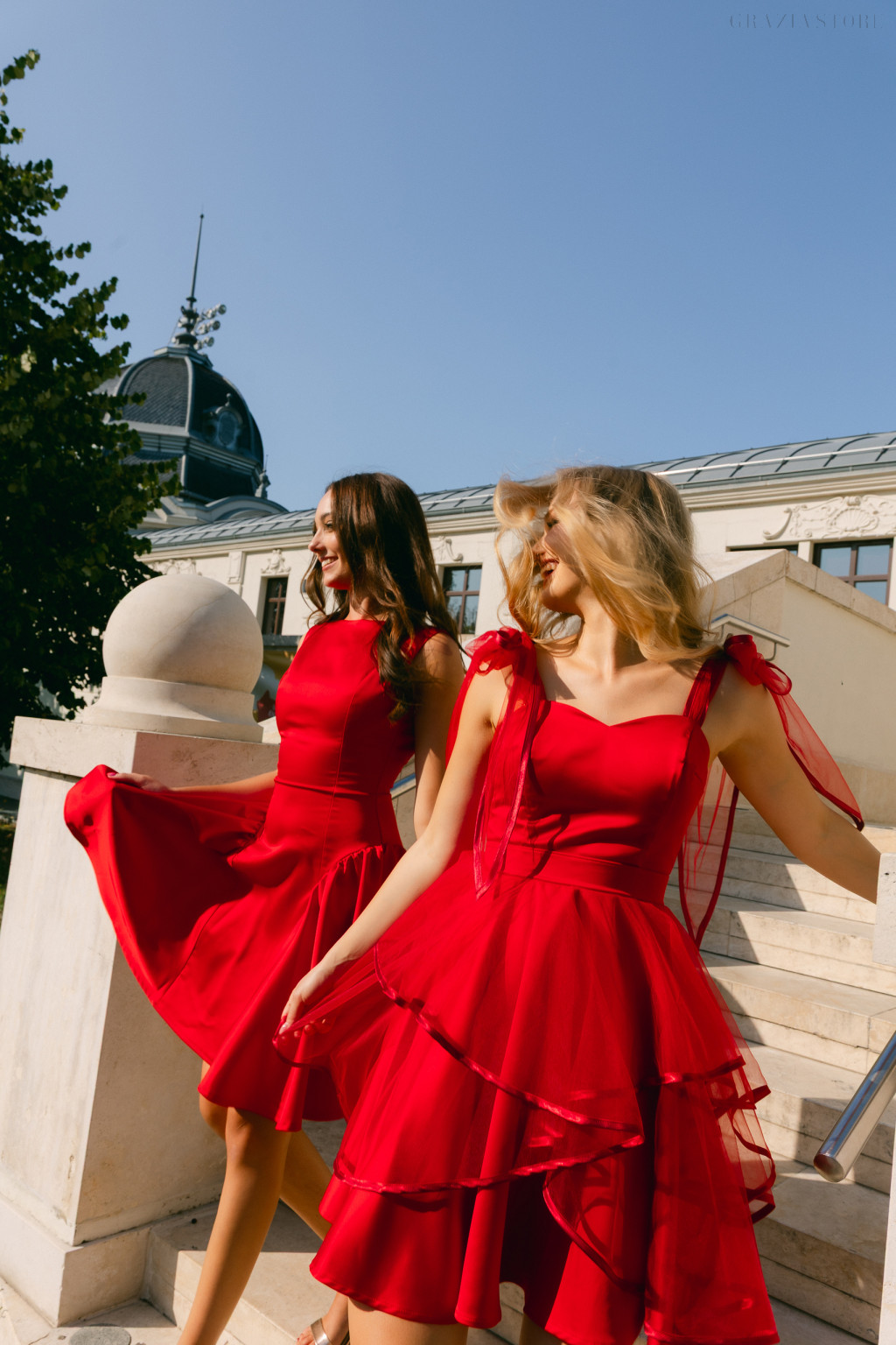 Niko – szatén mini ruha csípővonalban szabott fazonnal piros színben