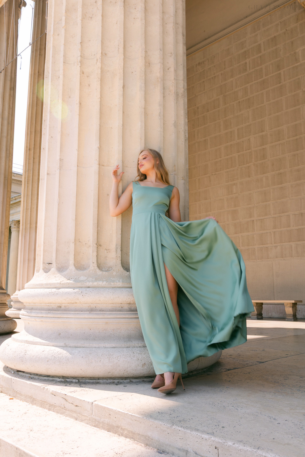 A zsályazöld szín különlegessége abban rejlik, hogy egyszerre nyugtató és elegáns, finom természetességével kiemeli a nőies vonalakat, miközben friss, modern alternatívát kínál a klasszikus alkalmi árnyalatok mellett.